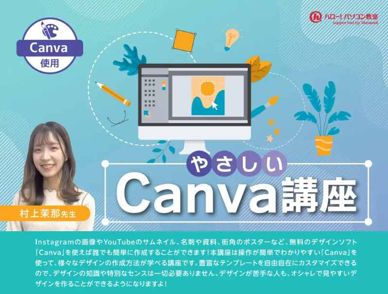「Canva」を使って、様々なデザインの作成方法が学べる講座です。