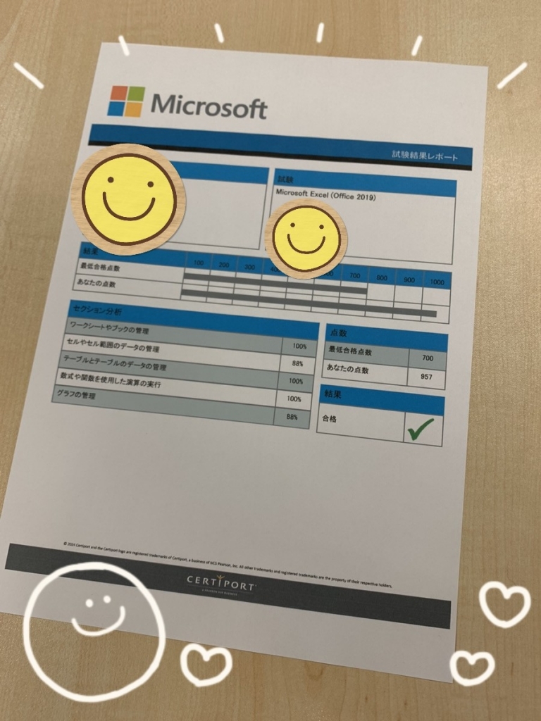 やがてMOS資格にも興味を持たれたTさんは資格取得の為のレッスンに励み、この度Excelの試験に合格されました!